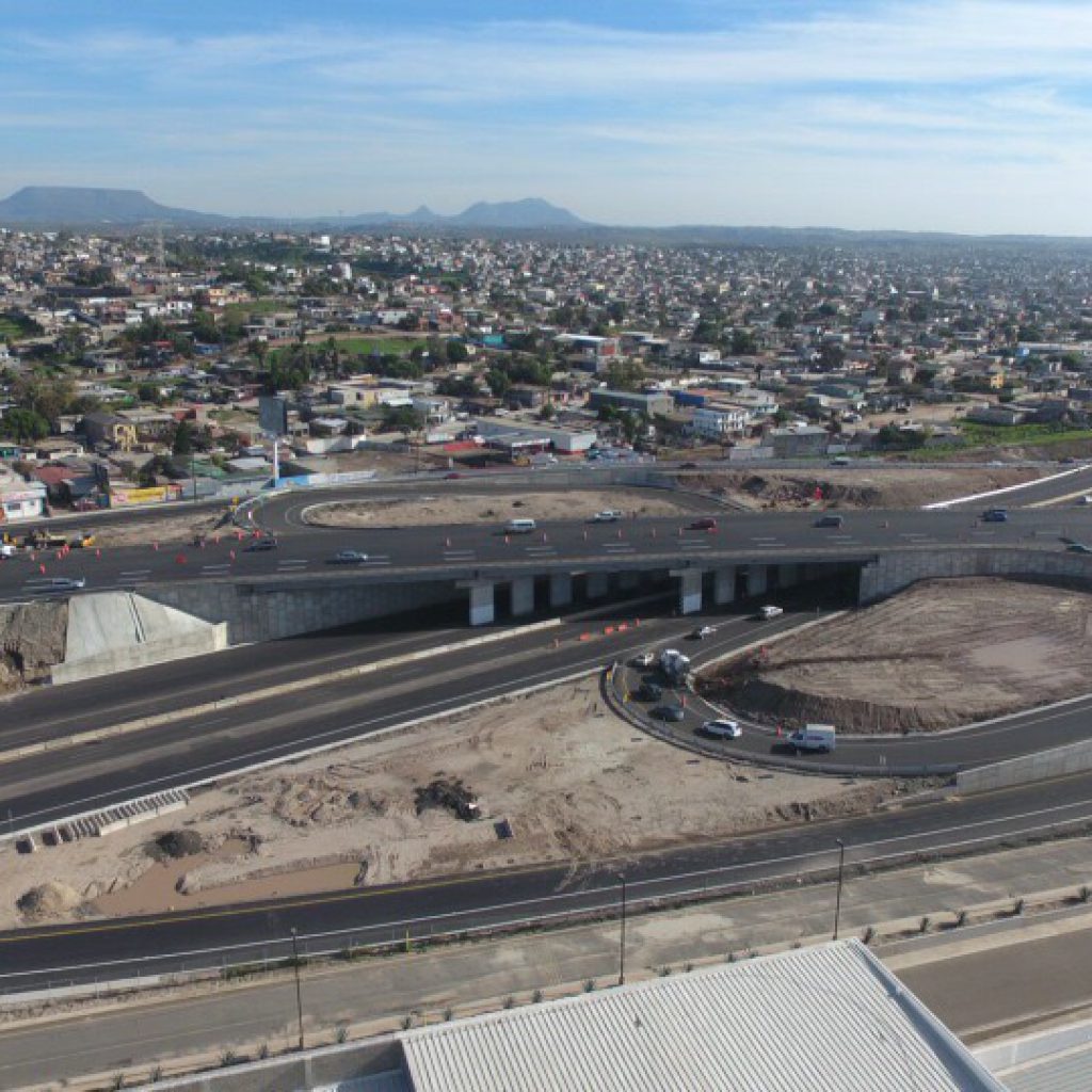 In order to improve mobility in the area, an uneven multiple ramps junction between the Trans peninsular Highway on its Rosarito-Tijuana section and the Scenic Highway on its Tijuana-Ensenada section was built. It has a structure for six lanes plus hard shoulder, and ramps in the municipality of Rosarito, Ensenada Baja California.